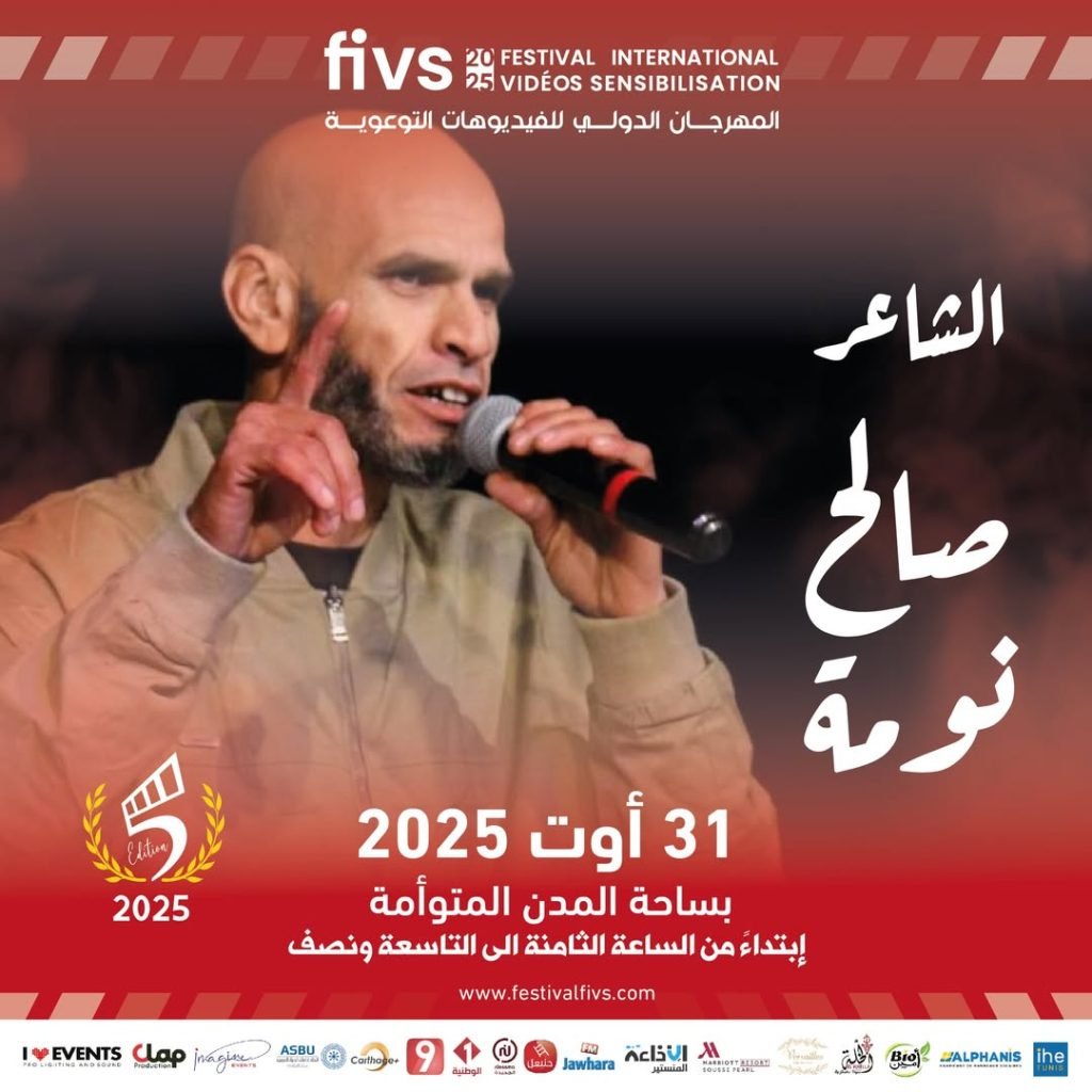 [ad_1] 🌙🎤 ضمن فعاليات المهرجان الدولي للفيديوهات التوعوية – الدورة الخامسة 🌙 وقبل عرض الفيديوهات والتتويجات يكون الجمهور على موعد مع أمسية شعرية مميزة يحييها: 🔴 الشاعر صالح نومة – صوت الجنوب 🔴 📅 التاريخ: 31 أوت 2025 📍 المكان: ساحة المدن المتوأمة – سوسة ⏰ التوقيت: من الساعة الثامنة مساءً إلى التاسعة ونصف ✨ […]