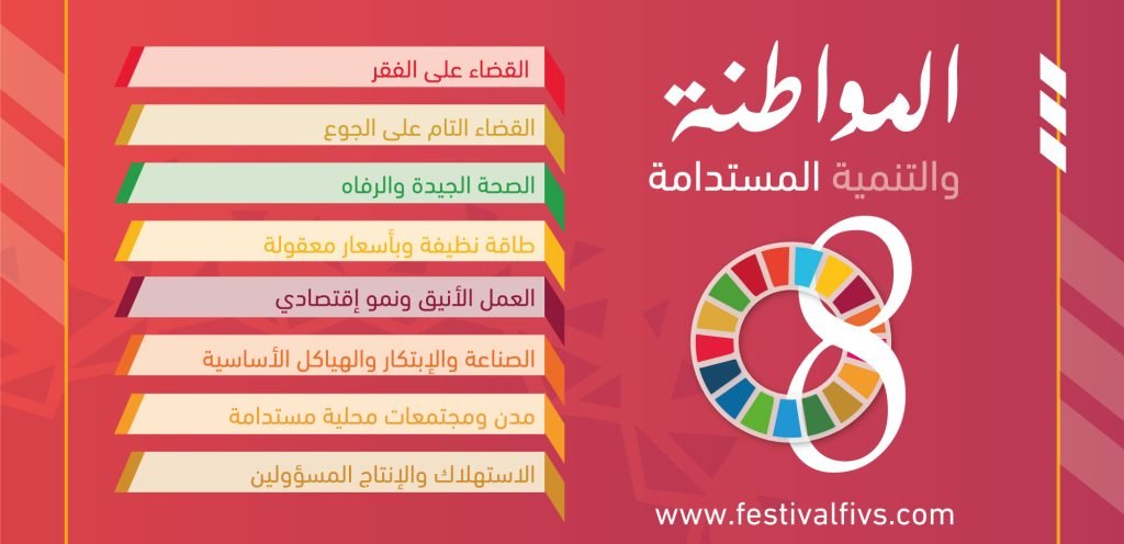 - وأقر المهرجان موضوع “مواطنة مستدامة لعالم يتنامى” محورا أساسيا لمسابقة الدورة السادسة من خلال تجلياتها في 8 بنود من أهداف التنمية المستدامة: